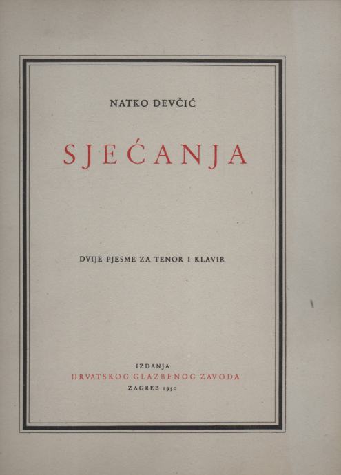 1.) Natko Devčić - Sjećanja : dvije pjesme za tenor i klavir