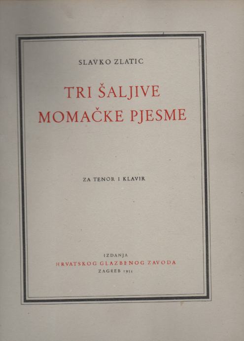 8.) Slavko Zlatić - Tri šaljive momačke pjesme : za tenor i klavir