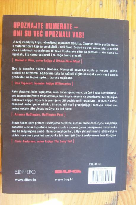 U ovom djelu originalnog istraživačkog rada i analize Stephen Baker nudi živopisan uvod u svijet čijim dijelom postajemo – i u ljude koji upravljaju njime. Numerati su prodrli u sve ljudske djelatnosti i profiliraju nas kao radnike, kupce, pacijente, glasače, potencijalne