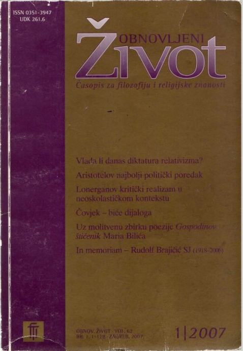 Obnovljeni Život 1/2007 časopis za filozofiju i religijske znanosti