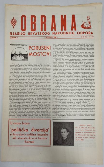 Obrana br. 61-62/1967.Uređuje: radni skup Stranica: 12Dimenzije: 25x38Jezik: MadridPismo: LatinicaStanje: Vrlo dobroUvez: MekiGodina: 1967