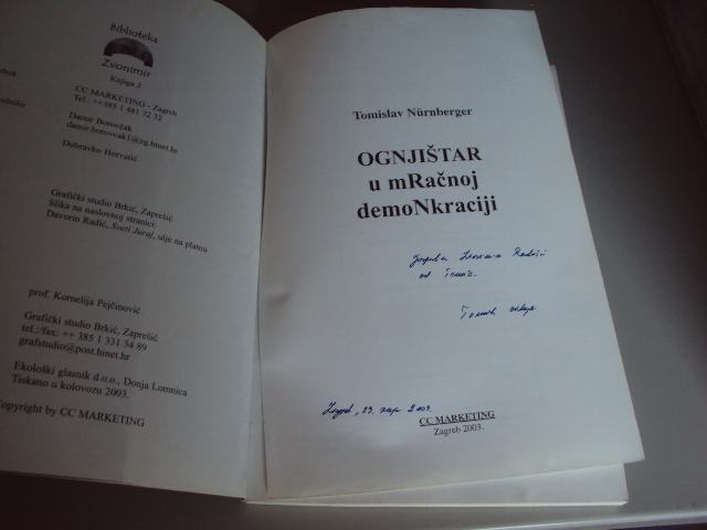OGNJIŠTAR U MRAČNOJ DEMONOKRACIJI Tomislav Nunberger - Posveta autora