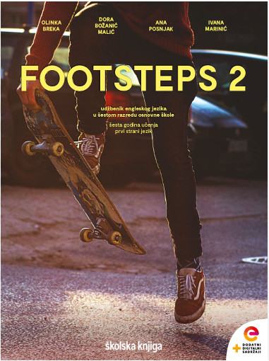 FOOTSTEPS 2 - udžbenik engleskog jezika s dodatnim digitalnim sadržajima u šestom razredu osnovne škole, šesta godina učenja.Stranica: 152Dimenzije: 21 x 28Jezik: ZagrebPismo: LatinicaStanje: Nova knjigaUvez: MekiGodina: 2020