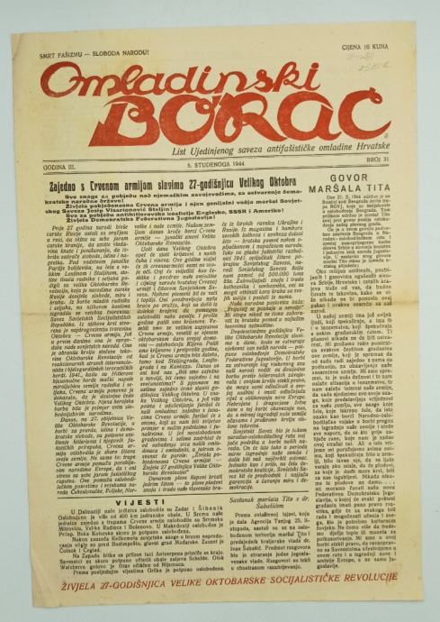 Omladinski borac br. 31/1944 List Ujedinjenog saveza antifašističke om
