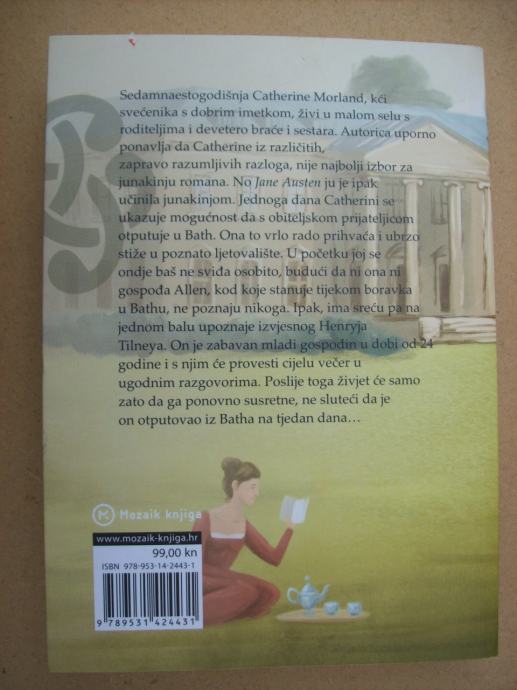 Sedamnaestogodišnja Catherine Morland, kći svećenika s dobrim imetkom, živi u malom selu s roditeljima i devetero braće i sestara. Autorica uporno ponavlja da Catherine iz različitih, zapravo razumljivih razloga, nije najbolji izbor za junakinju romana. No Jane Austen ju je ipak učinila junakinjom. Jednoga dana Catherini se ukazuje mogućnost da s obiteljskom prijateljicom otputuje u Bath. Ona to vrlo rado prihvaća i ubrzo stiže u poznato ljetovalište. U početku joj seondje baš ne sviđa osobito, budući da ni ona ni gospođa Allen, kod koje stanuje tijekom boravka u Bathu, ne poznaju nikoga. Ipak, ima sreću pa na jednom balu upoznaje izvjesnog Henryja Tilneya. On je zabavan mladi gospodin u dobi od 24 godine i s njim će provesti cijelu večer u ugodnim razgovorima. Poslije toga živjet će samo zato da ga ponovno susretne, ne sluteći da je on otputovao iz Batha na tjedan dana…
