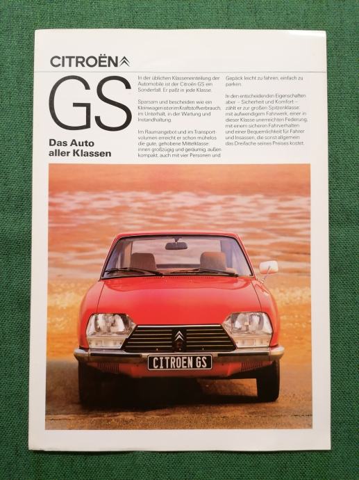 Originalni prospekt Citroen GS iz 9. mjeseca 1978. godine, prodajem.