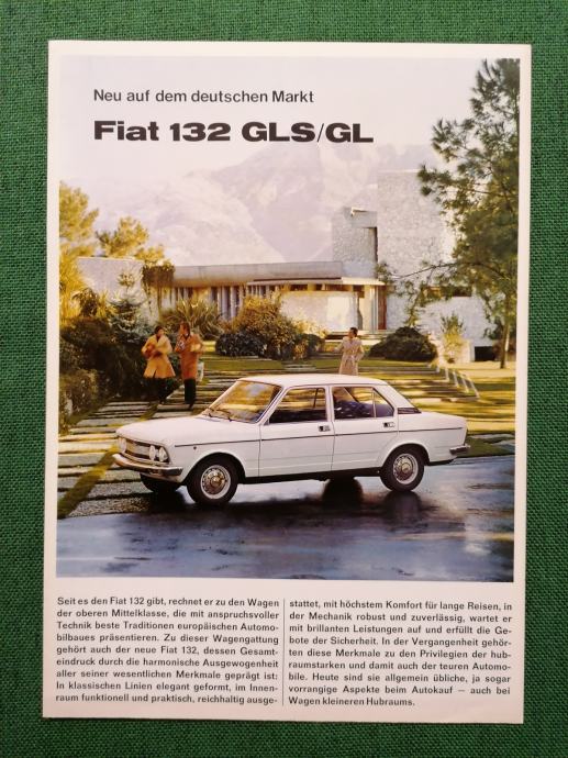 Originalni prospekt FIAT 132 GLS/GL od 1.03.1974. godine, prodajem.