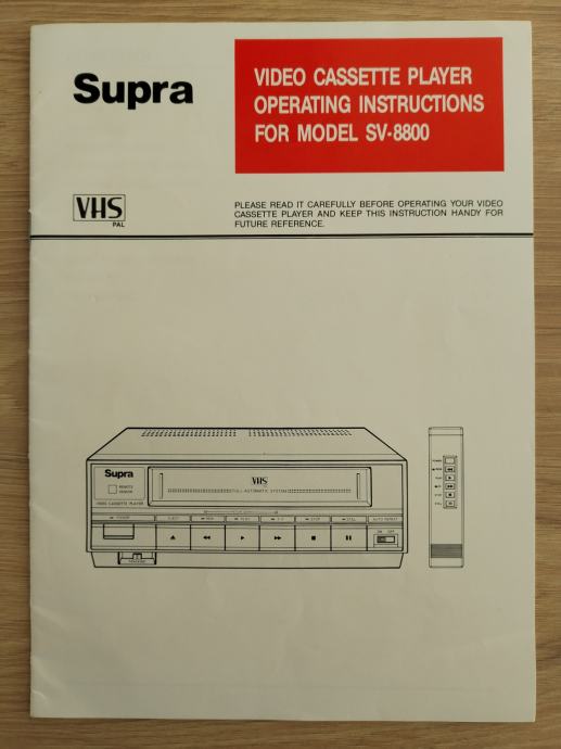 ORIGINALNO UPUTSTVO ZA UPOTREBU SUPRA VIDEO KAZETOFON PLAYER SV-8800, odlično očuvano, na petnaest stranica na engleskom jeziku prikazuje navedeni model, prodajem.