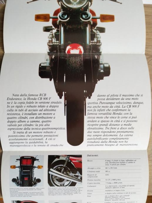 Originalni prospekt HONDA CB 900 F Bol d or iz 1980-ih godina, odlično očuvan, na šest stranica, na kvalitetnom lakiranom papiru, na talijanskom jeziku, bogat slikama, tekstualnim opisom i tehničkim podacima, vrlo rijedak prospekt.