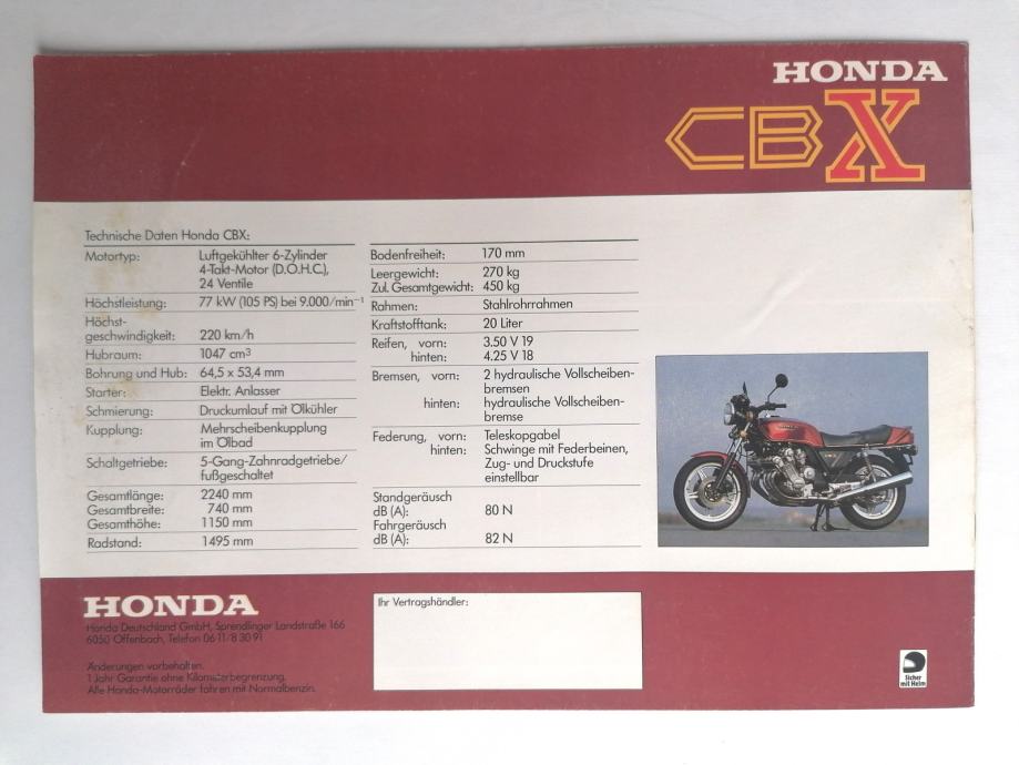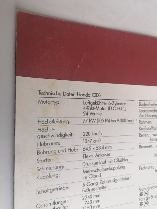 Originalni prospekt HONDA CBX 1000 iz 1980-ih godina, BROJ 2, brochure, prodajem.