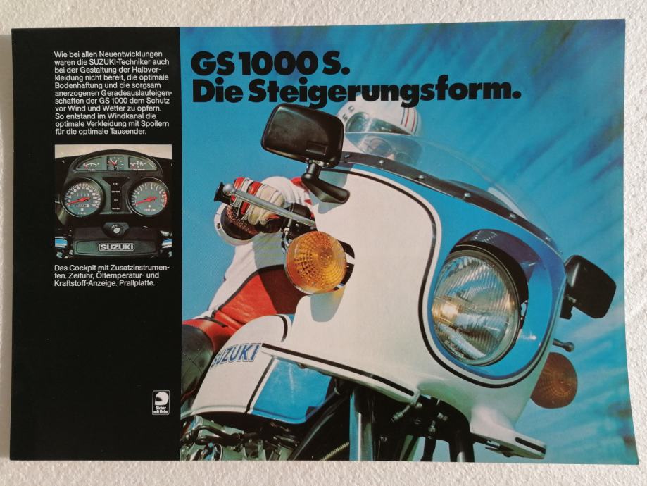 Originalni prospekt motocikla SUZUKI GS 1000 S iz 1980-ih godina, brochure.