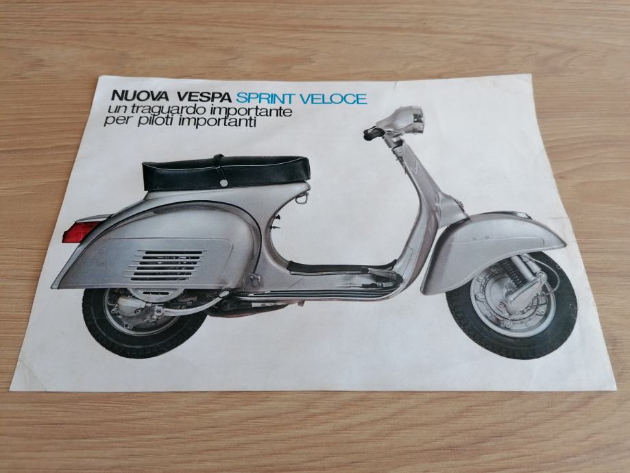 Originalni prospekt NUOVA VESPA SPRINT VELOCE 150 iz 1969. godine, vrlo dobro očuvan, na talijanskom jeziku, sastoji se od dvije stranice, sa slikama, opisom i opširnim tehničkim podacima, vrlo rijedak i tražen prospekt, prodajem.