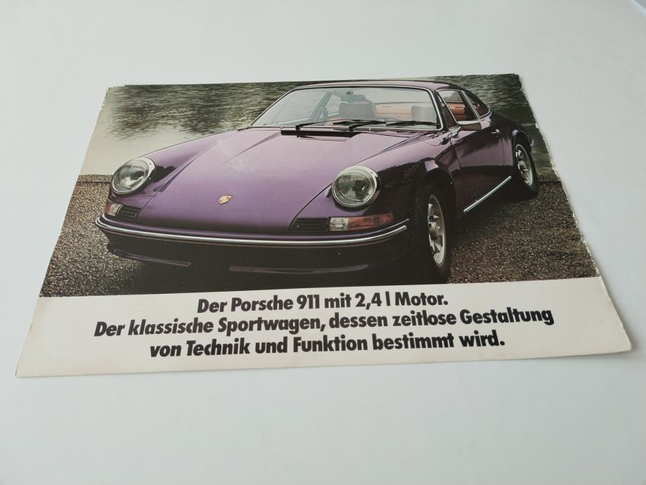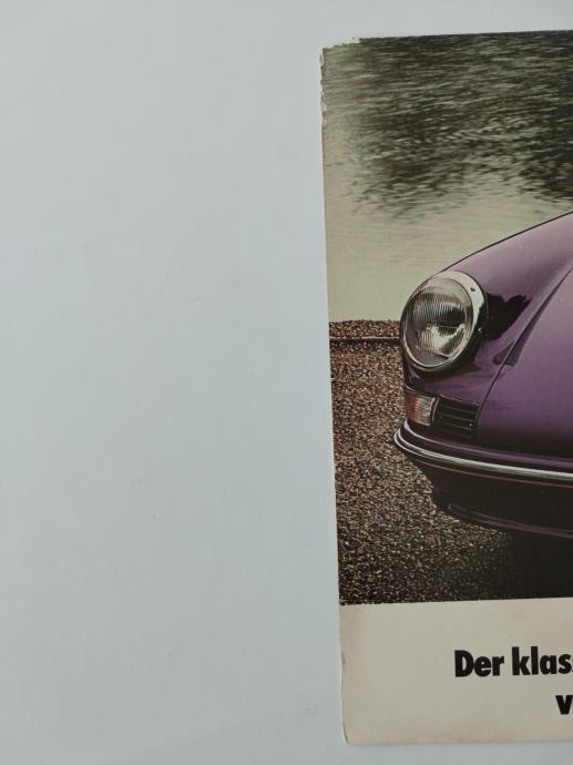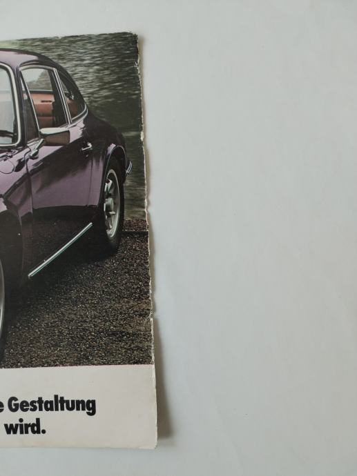 Originalni prospekt PORSCHE 911 2.4 iz 1970-ih godina, star preko 55 godina, sastoji se od četiri stranice bogate slikama i tehničkim podacima, na njemačkom jeziku, vrlo dobro očuvan, ali na lijevim i desnim rubovima ima blaga oštećenja, blage tragove starosti koje možete vidjeti na slikama, prodajem.
