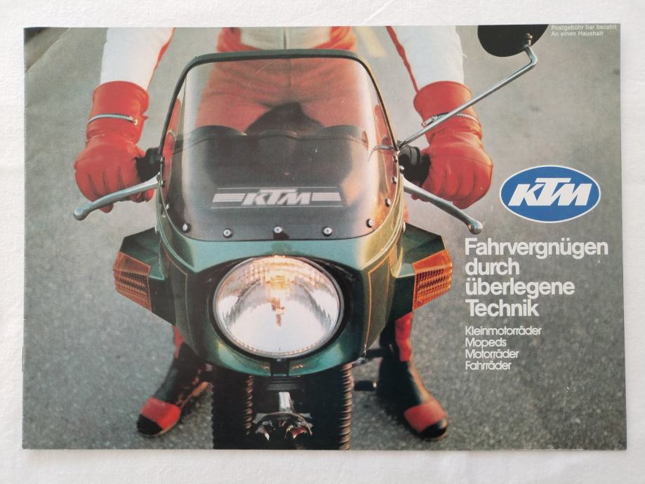ORIGINALNI PROSPEKT PROGRAM KTM iz 1979. godine, odlično očuvan - kao nov, na 16 stranica, na kojima su prikazani svi modeli motocikla i bicikla, koje je KTM proizvodio 1979. god.