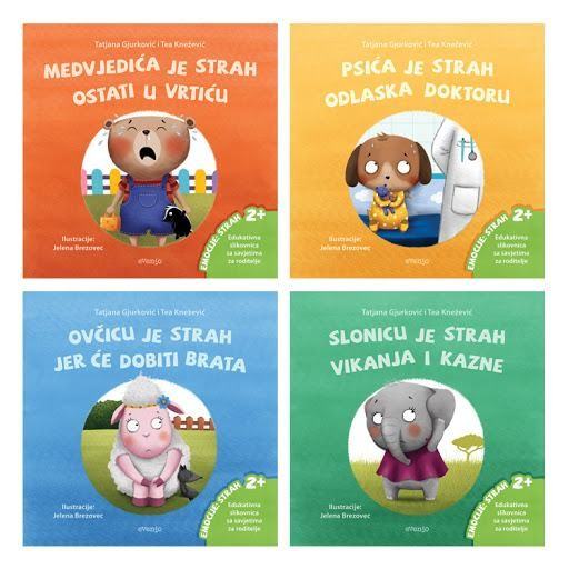 Četiri slikovnice koje govore o načinima na koje djeca izražavaju strah spadaju u takozvane terapeutske slikovnice.Osjećaj straha kod djeceSva djeca doživljavaju strah te se to smatra normalnim dijelom djetetova razvoja. Bez obzira na to čine li se odrasloj osobi djetetovi strahovi realni ili ne, za dijete su oni realni i na odraslima je da pronađu način kako da se dijete ponovno osjeća sigurno i zaštićeno uz njih. Kako se djetetova mašta isprepliće s realnošću, osobito je važno da roditelj (i/ili druga odrasla osoba koja odgaja dijete) pomogne djetetu da se nosi sa strahom, da ga smiri, da mu pruži podršku uz pomoć fizičkoga kontakta i umirujućih riječi.Serija se sastoji od sljedećih naslova:Ovčicu je strah jer će dobiti brataStrah od promjena u obiteljskom okruženju; strah od gubitka roditeljske pažnje.