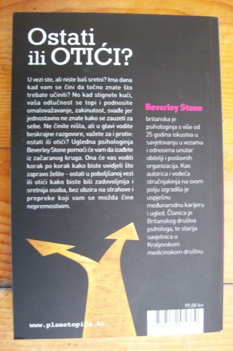 U vezi ste, ali niste baš sretni? Ima dana kad vam se čini da točno znate što trebate činiti? No, kad stignete kući, vaša odlučnost se topi i podnosite omalovažavanje, zakinutosti, svađe jer jednostavno ne znate kako se zauzetu za sebe. Ne činite ništa, ali u glavi vodite beskrajne razgovore, važete za i protiv: ostati ili otići? Razlog nedonošenja odluke i neodlučnosti jest strah: strah od pogreške, od toga da sve ne bude još gore, strah od neizvjesnosti. No, neodlučnost je najslabiji izbor kojeg ćete kad-tad zažaliti, a najveći strah ljudske psihe jest zapravo onaj od uzaludno potrošenog života, jedna je od vrlo znažnih poruka ove knjige. Ugledna psihologinja Beverley Stone pomoći će vam da izađete iz tog začaranog kruga. Ona će vas voditi korak po korak kako biste uvidjeli što zapravo želite - ostati u poboljšanoj vezi ili otići kako biste bili zadovoljnija i sretnija osoba, bez obzira na strahove i prepreke koji vam se možda čini nepremostivim. Stone opisuje zahtjevne, ali ne i nepremostive prepreke koje moramo savladati kako bismo počeli živjeti životom kojeg želimo, a ujedno daje konkretne odgovore kako to učiniti.