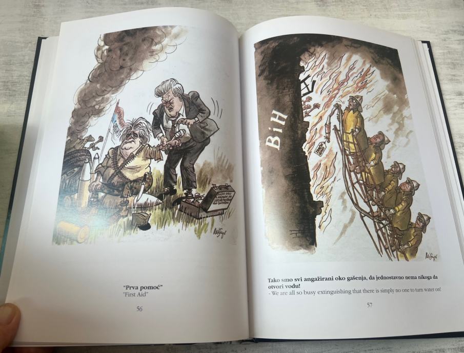 Sabrane karikature Otona A. Reisingera iz Domovinskog rata u jednoj knjizi.