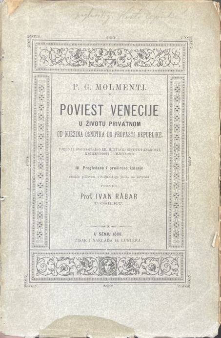 P. G. Molmenti: Poviest Venecije u životu privatnom od njezina osnutka