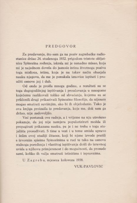 Pavao Vuk-Pavlović: Spinozina etika, Tipografija d. d., Zagreb 1938.