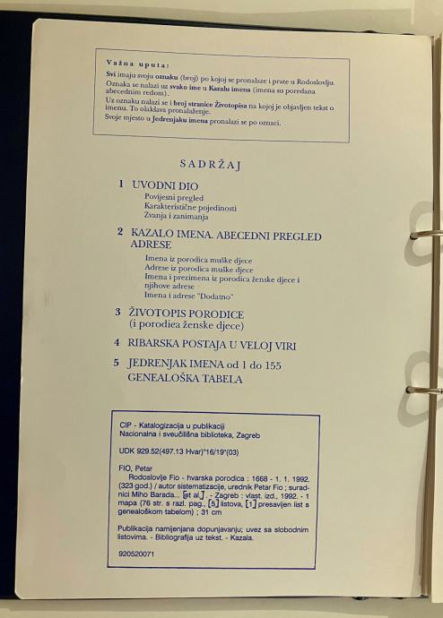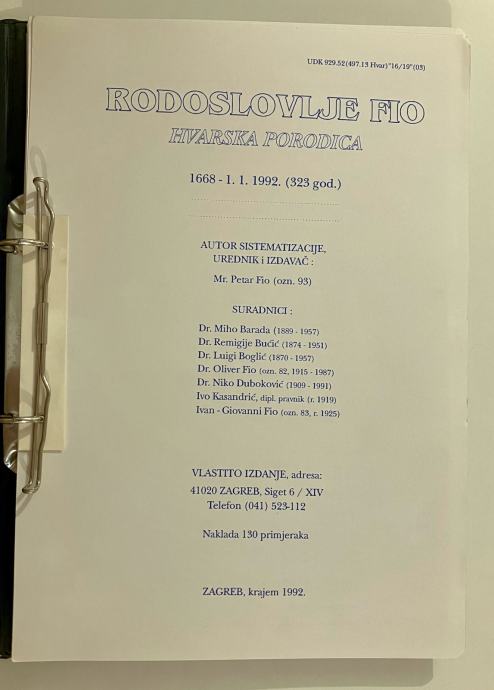 Naslov: Rodoslovlje Fio Hvarska porodica 1992
