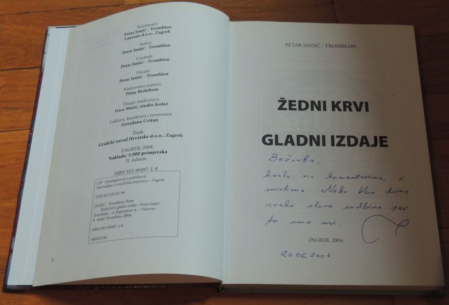 Petar Janjić Tromblon Žedni krvi, gladni izdaje posveta autora