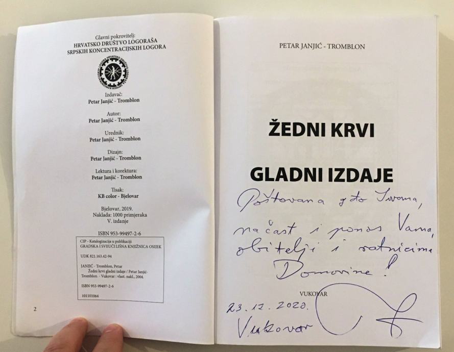 Petar Janjić Tromblon Žedni krvi gladni izdaje Posveta i potpis autora