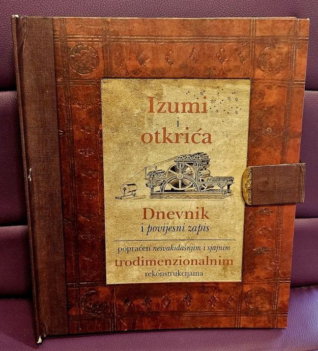 Izumi i otkrića serija je edukativnih knjiga izrađenih na zaista originalan i inventivan način. Svaka od njih obuhvaća radove najvećih umova čovječanstva čija su izvornost i genijalnost zauvijek promijenili svijet. Prva je uspješnica u seriji bila Izumi Leonarda da Vincija čiju je kvalitetu prepoznala najšira publika, kao i obrazovne ustanove za najmlađe. U nastavku serije, nazvanom Izumi i otkrića, Dnevnik i povijesni zapisi, objašnjene su revolucionarne ideje - od Kopernikovog heliocentričnog sustava do Edisonovog fonografa i električne žarulje, Gutenbergovog tiskarskog stroja, Wattovog parnog stroja, Lumierovog kinematografa i Marconijevog radija. Trodimenzionalne rekonstrukcije olakšavaju razumijevanje tih prijelomnih trenutaka u ljudskoj povijesti. Kolekcionarsko izdanje - inspirativan poklon za mlade i stare!Stranica: 10Dimenzije: 280x240 mmJezik: ZagrebPismo: LatinicaStanje: OdličnoUvez: TvrdiGodina: 2011