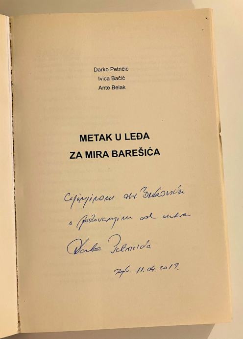 Petričić Bačić Belak - Metak u leđa za Mira Barešića Posveta i potpis