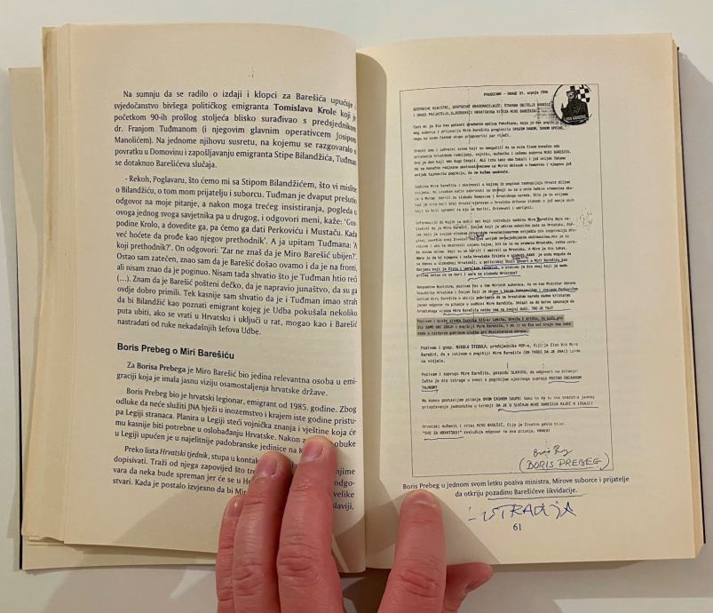 Autori progovaraju o razdoblju Domovinskog rata i likvidaciji hrvatskog emigranta Mire Barešića, koji je gotovo cijeli život proveo u bijegu i u zatvorima. Njegov život opisan je u detaljnoj biografiji. Posebna pozornost je posvećena periodu nakon povratka u Hrvatsku. I istrazi o pripremi i provedbi njegove likvidacije, kao i ulozi Josipa Perkovića. Aktivna uloga u Josipa Perkovića u likvidaciji Mira Barešića ne može se ignorirati. Hrvatski iseljenici koji su pomagali Miru Barešiću dok je bio u Južnoj Americi i koji su s njime bili u stalnom kontaktu nisu mogli vjerovati da je Miro po povratku u Hrvatsku bio na sastancima s Josipom Perkovićem, Gojkom Šuškom i Vicom Vukojevićem. Taj moment je posebno intrigantan pogotovo stoga što je općepoznato da je upravo Josip Perković bio uključen u organizaciju likvidacije hrvatskih emigranata. Trebalo je proći više od 20 godina da bi se počelo rasvjetljavati najmračnije poglavlje Domovinskog rata, a to je likvidacija najpoznatijeg hrvatskog emigranta Mira Barešića. Za Barešića je rat za samostalnu Hrvatsku započeo još 1971. godine hrabrim ali nerazboritim činom kojim je htio ubrzati kotač političke povijesti. Barešić je proveo gotovo cijeli svoj život u bijegu i zatvorima, a istovremeno su mu pripadnici Udbe pripremali smaknuće. Kada je pomislio da je osamostaljenjem Hrvatske došao kraj njegovim mukama i progonima, Barešić se vraća u Domovinu u kojoj gubi život.