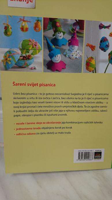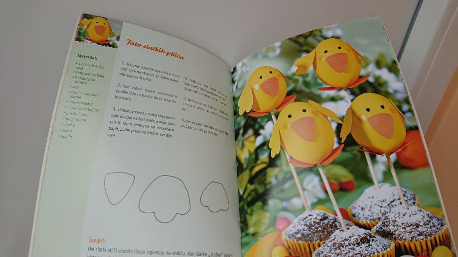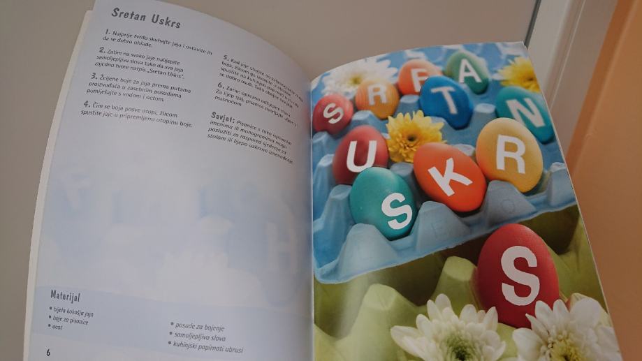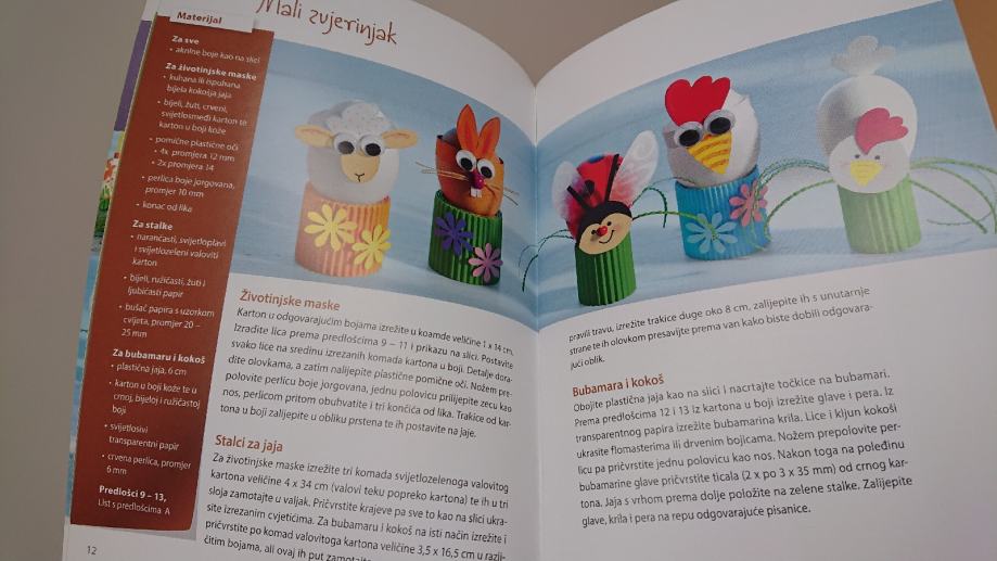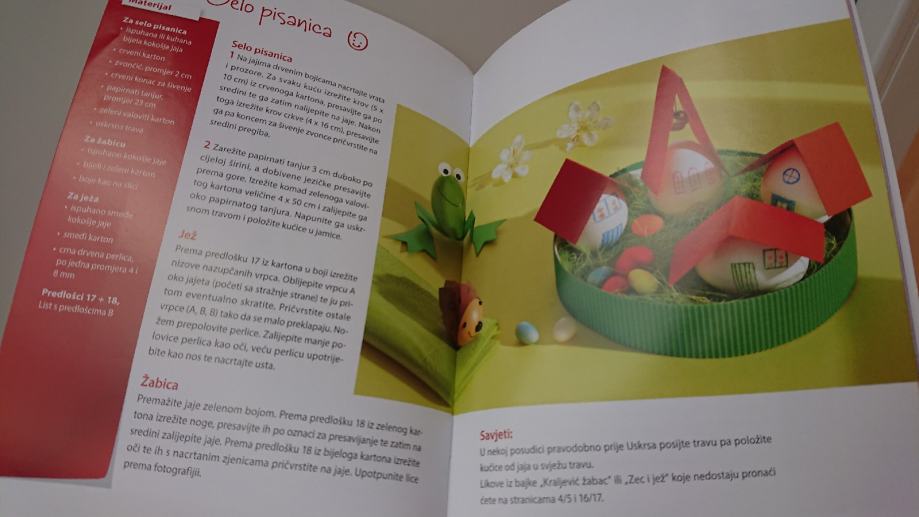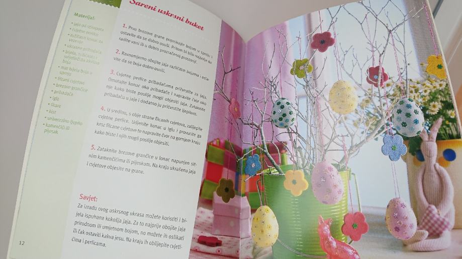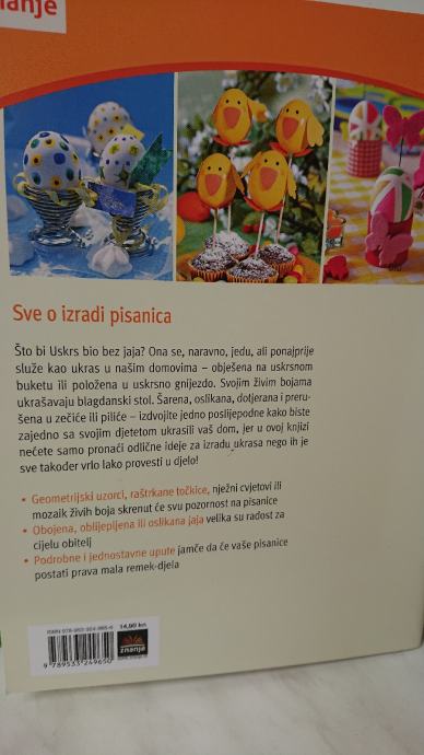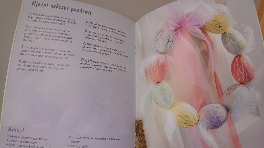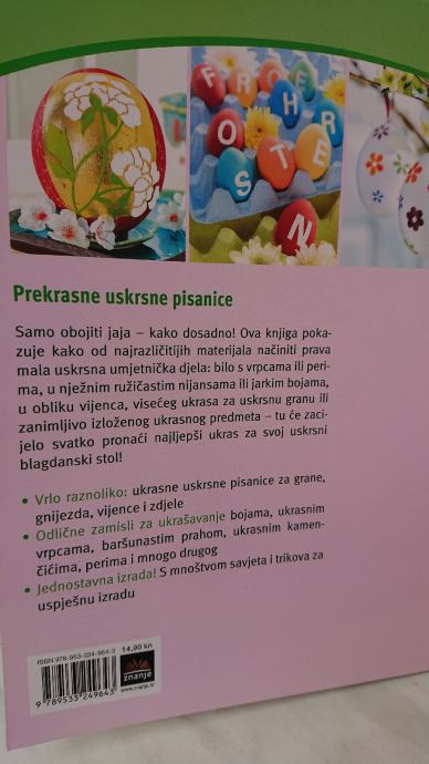 Jako puno ideja za izradu posebnih ukrasa i pisanica, uz detaljna objašnjenja i savjete, te puno slika u boji.
