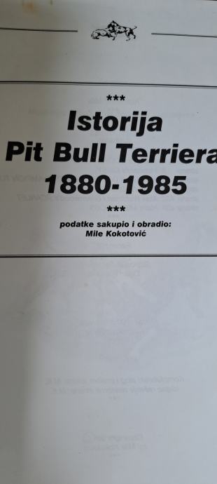 Jedinstveni primjerak za sve ljubitelje pasmine PIit Bull Terriera, "ISTORIJA PIT BULL TERRIERA 1880-1985" - knjiga napisana na 440 stranica od Mile Kokotovića, - knjiga koja opisuje pasminu Pit Bull terriera kroz povijest, odlično sačuvana..