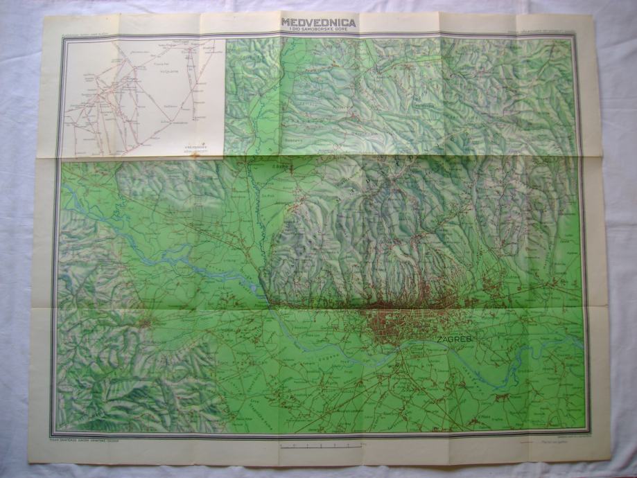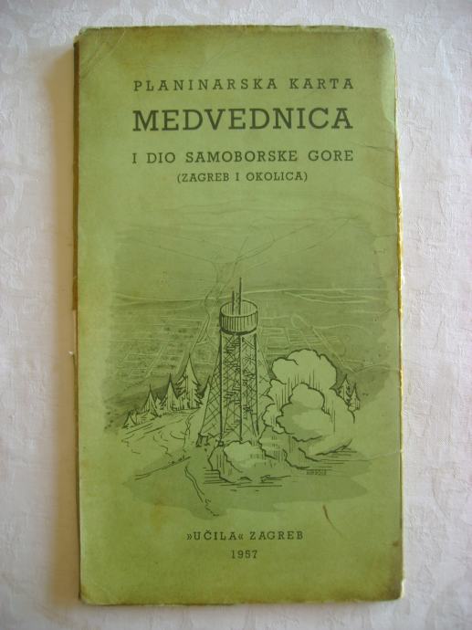 Planinarska karta - Medvednica i dio Samoborske gore (Zagreb i okolica) - izdavač Učila, Zagreb 1957. godine, 88 x 69 cm, u etuiu.