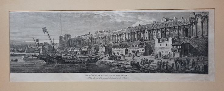 Louis-Francois Cassas i Joseph Lavallée: Pogled iz luke na Dioklecijanovu palaču / Vue generale du palais de Diocletien, Prise du cote de la grande Colonade et du Port.Veduta iz monumentalnog djela „Voyage pittoresque dell'Istrie et de la Dalmatie“, Pariz, 1802.Bakrorez, uže margineDimenzije bakroreza: 67x24Ukupne dimenzije: 71x36Dimenzije: 67x24Jezik: ParizPismo: LatinicaStanje: Vrlo dobroGodina: 1802