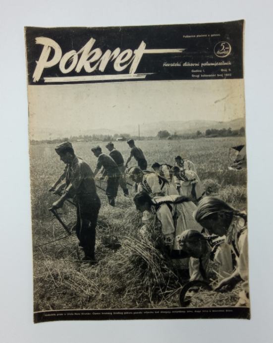 Pokret br. 9. / 1942.Hrvatski slikovni polumjesečnik Nezavisna država HrvatskaNaslovnica: Članovi hrvatskog Ustaškog pokreta pomažu seljacima kod žetve Stranica: 20Dimenzije: 26.5x36.5Jezik: ZagrebPismo: LatinicaStanje: Vrlo dobroUvez: MekiGodina: 1942