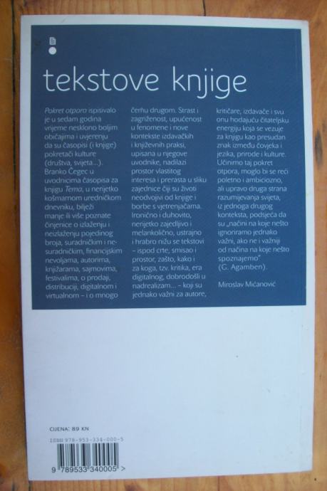 Strast i zagriženost, upučenost u fenomene i nove kontekste izdavačkih i književnih praksi, upisana u njegove uvodnike, nadilazi prostor vlastitog interesa i prerasta u sliku zajednice čiji su životi neodvojivi od knjige i borbe s vjetrenjačama. Ironično i duhovito, nerijetko zajedljivo i melankolično, ustrajno i hrabro nižu se tekstovi ispod crte, smisao i prostor, zašto, kako i za koga, tzv. kritika, era digitalnog, dobrodošli u nadrealizam, koji su jednako važni za autore, kritičare, izdavače i svu onu hodajuću čitateljsku energiju koja se vezuje za knjigu kao presudan znak između čovjeka i jezika, prirode i kulture. Učinimo taj pokret otpora, moglo bi se reći poletno i ambiciozno, ali upravo druga strana razumijevanja svijeta, iz jednoga drugog konteksta, podsjeća da su načini na koje nešto ignoriramo jednako važni, ako ne i važniji od načina na koje nešto spoznajemo (G. Agamben).