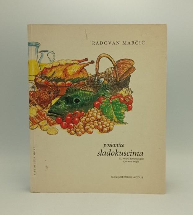 Radovan Marčić: Poslanice sladokuscima: 152 recepta uzmorske spize i još malo drugihSvjestan da su otočni i primorski gastronomski biseri, o kojima pedantno poput kakvog etnogastronoma svjedoči u kolumni i sada u knjizi koja je pred vama, pristizali podjednako i iz Mletaka i od Morlaka, i sa Zapada i od Levanta, kogo Radovan neće preskočiti ni “vlašku” kaštradinu s neizbježnom “kiselinom”, ni domaće pulastre ili divljač. Bakalar “na bjanko”, maštoviti miomirisni složenci od povrća, neupitni zgodici autohtone dalmatinske kuhinje poput pašticade, koja se, poručuje naš kogo, osim od govedine može raditi i od tune, nebrojene otočne varijacije brujeta i “morlačka” jela od divljači, mediteranske tripice, toći od školjaka te buzare od kojih bi i mrtvi uskrsli... nisu samo iznimne delicije koje je zahvaljujući preciznim kogovim receptima moguće spraviti i u vlastitom loncu ili teći. Oni su autentični i nadasve ilustrativni djelići priče o istočnoj obali Jadrana i o njenom kulturnom i biološkom “talioničkom loncu”. Još bolje, to su sidrišta iznimne gastronomske đite koja - bili naute i morske skitnice, “samo” turisti-namjernici ili pak “virtualni” putnici ukotvljeni za vlastitim štednjakom - vrijedi otkrivati brodeći tragom koga Radovana. Stranica: 263Dimenzije: 20.5x25Jezik: ZagrebPismo: LatinicaStanje: Vrlo dobroUvez: Meki s ovitkomGodina: 2005