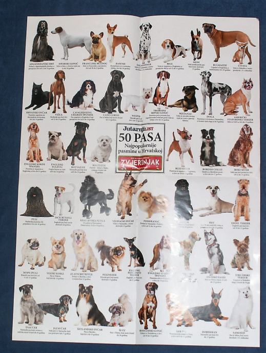 POSTER 50 PASA Najpopularnije pasmine u Hrvatskoj 410x560 mm