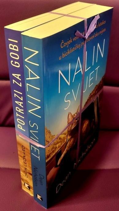 NALIN SVIJET:Kad je tridesetogodišnji Dean Nicholson krenuo iz Škotske biciklom oko svijeta, namjeravao je otkriti sve što može o našemu izmučenu planetu. No, nije računao na lekcije koje će naučiti od svoje neočekivane družice.Tri mjeseca nakon polaska, na zabačenoj cesti u planinama između Crne Gore i Bosne, naišao je na napuštenu mačkicu. Nije mogao odoljeti prodornu pogledu i molećivu mijauku blatnjave sirotice, nije ju mogao samo tako prepustiti njezinoj sudbini, pa ju je smjestio na bicikl i, uz pomoć lokalnih veterinara, pomogao joj da se oporavi.Veza je ubrzo postala neraskidiva – i on i mačka koju je nazvao Nala bili su znatiželjni, neovisni, otporni i pustolovna duha. Videosnimka njihova susreta pogledana je dvadeset milijuna puta, njihov Instagram ima 750 0000 pratitelja, a broj i dalje raste!Dobrota stranaca, izbjeglički kampovi, spašavanje životinja u Europi i Aziji naučili su Deana i Nalu da je upravo ono neočekivano istodobno i najljepše. Uz pomoć Garryja Jenkinsa, pisca koji je s Jamesom Bowenom napisao bestseler Fantastični mačak Bob, Dean je zapisao izvanrednu priču o svojoj i Nalinoj avanturi, priču koja će vas nadahnuti i raznježiti.U POTRAZI ZA GOBI:U potrazi za Gobi čudesna je priča Diona Leonarda, prekaljenoga ultramaratonca kojem se na 250-kilometarskoj utrci kroz pustinju Gobi na putu našao pas lutalica. Ljupka kujica, koja će poslije dobiti ime Gobi, dokazala je da nedostatak u veličini i više nego nadoknađuje svojim srcem, prateći u stopu Diona preko gorja Tien Shan, golemih pješčanih dina, preko crnih pijesaka pustinje Gobi, ne napuštajući ga gotovo 130 kilometara.Dok je Dion svjedočio nevjerojatnoj odlučnosti i srčanosti male životinje, i sâm je doživio duhovnu promjenu. Dok su za njega utrke prije značile pobijediti i biti najbolji, sad mu je cilj bio zadržati Gobino prijateljstvo poslije ciljne crte. Počeo je puštati Gobi da prespava s njim u šatoru, dijeleći s njom ono malo hrane što je imao i prenoseći je preko brojnih rijeka, čak i kad je to značilo zaostati u utrci ili, još gore, možda i ne završiti utrku.Premda Dion nije pobijedio u utrci, stekao je nešto mnogo važnije – nov pogled na život i novu prijateljicu koju je namjeravao povesti kući čim riješi administrativna pitanja. Međutim, prije nego što ju je uspio odvesti kući, Gobi je nestala u velikome kineskom gradu u kojem su je čuvali. Dion ju je uz pomoć stranaca i svestranu podršku na internetu počeo tražiti i naposljetku se ponovno našao s čudesnom životinjom koja mu je promijenila život te njemu i svijetu pokazala da su čuda moguća.Stranica: 544Dimenzije: 13,5x21 cmJezik: ZagrebPismo: LatinicaStanje: Nova knjigaUvez: MekiGodina: 2021