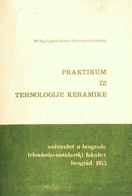 PRAKTIKUM IZ TEHNOLOGIJE KERAMIKE Ljiljana Kostić Gvozdenović