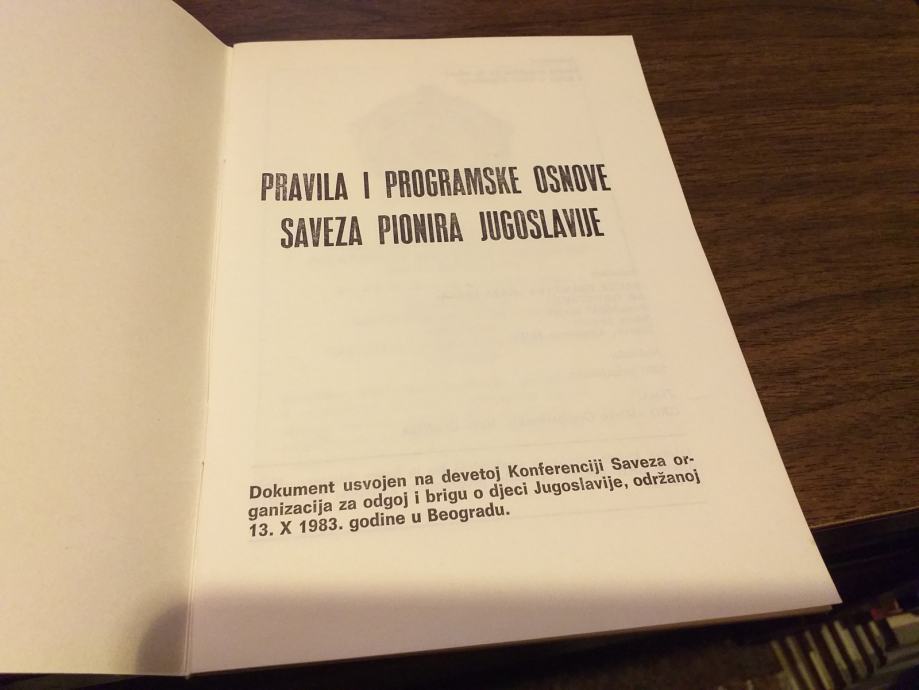 PRAVILA I PROGRAMSKE OSNOVE SAVEZA PIONIRA JUGOSLAVIJE 1983.