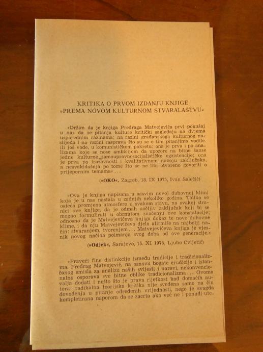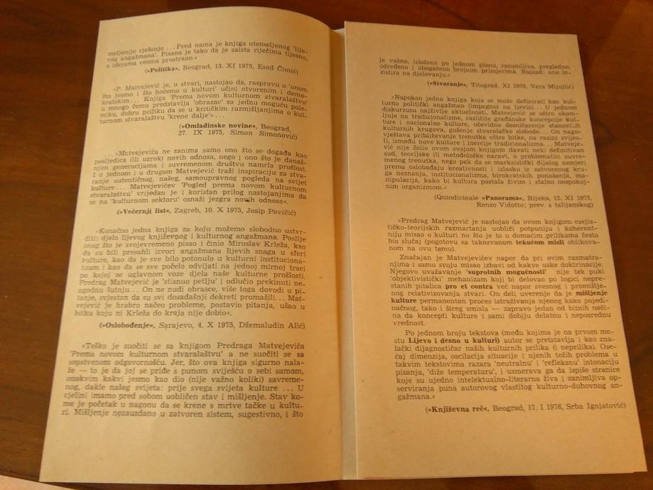 predrag matvejević PREMA NOVOM KULTURNOM STVARALAŠTVU, ZG 1977
