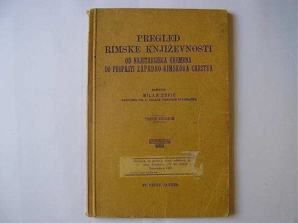 Sastavio: Milan ZepićPregled Rimske književnostiOd najstarijeg vremena do propasti zapadno-rimskog carstva Stranica: 75Dimenzije: 15x23Jezik: ZagrebPismo: LatinicaStanje: DobroUvez: MekiGodina: 1916