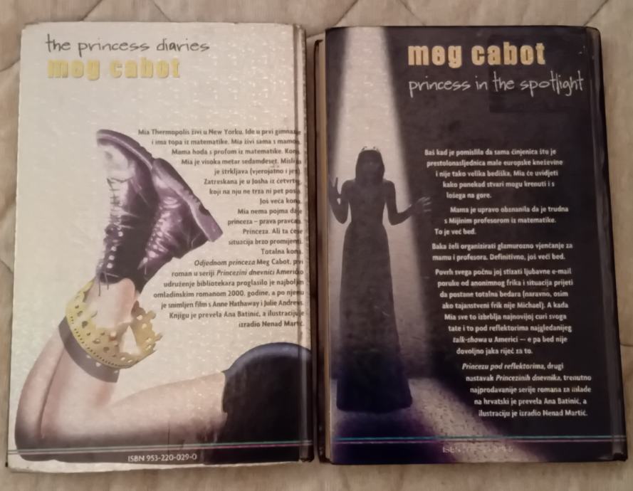 Prodajem komplet knjiga Princezini dnevnici knjiga 1. „Odjednom princeza" i 2. „Princeza pod reflektorima", autorica Meg Cabot,