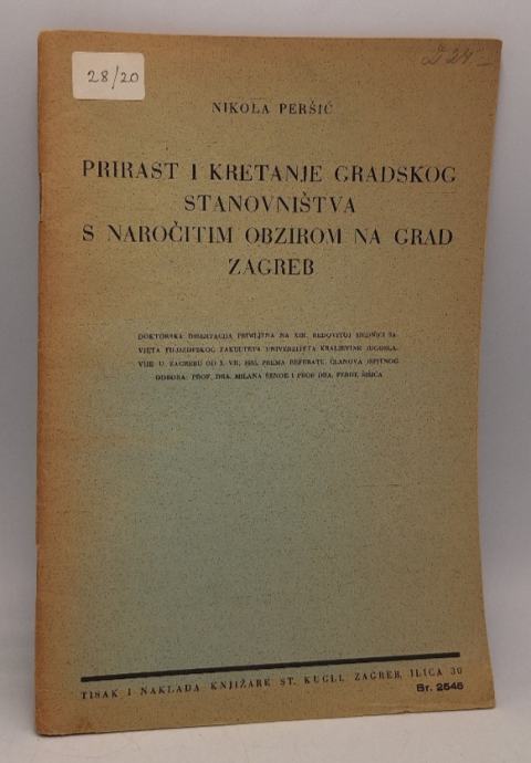 Nikola Peršić: Prirast i kretanje gradskog stanovništva s naročitim obzirom na grad Zagreb Stranica: 50Dimenzije: 15x22.5Jezik: ZagrebPismo: LatinicaStanje: Vrlo dobroUvez: MekiGodina: 1935