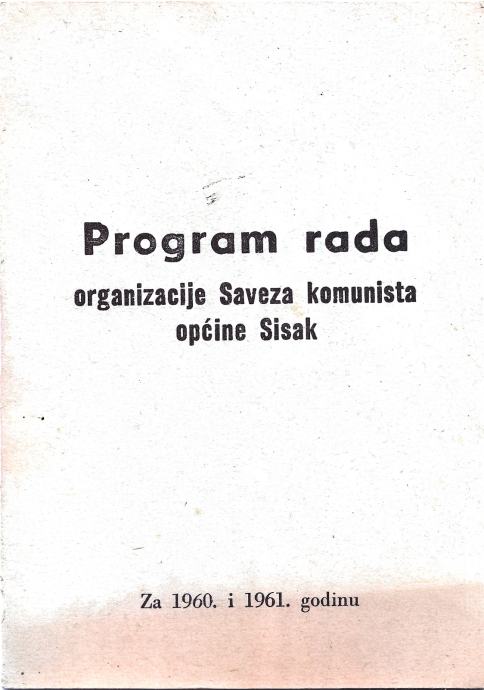PROGRAM RADA organizacije Saveza komunista općine Sisak za 1960. i 1961. godinu. dobro očuvana brošura