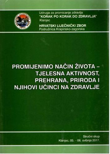 PROMIJENIMO NAČIN ŽIVOTA-TJELESNA AKTIVNOST,PREHRANA,PRIRODA I NJIHOVI UČINCI NA ZDRAVLJEStranica: 105Jezik: ZagrebPismo: LatinicaStanje: OdličnoUvez: MekiGodina: 2017