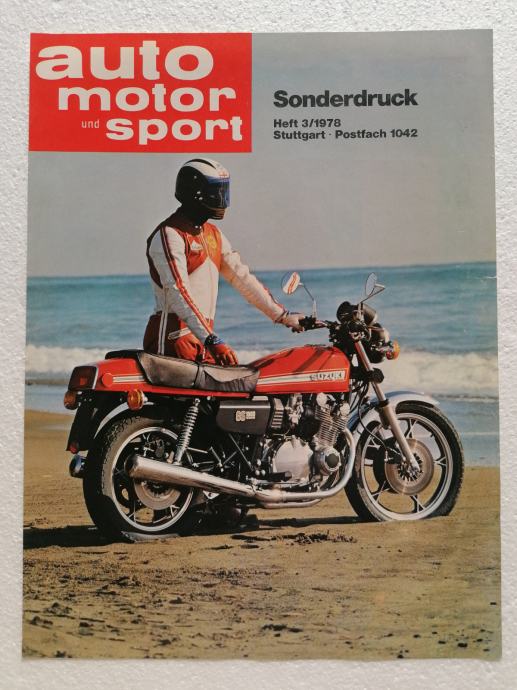 Prospekt test motocikla SUZUKI GS 1000 E iz 1978. godine tj test izvještaj (posebno izdanje) njemačke revije "auto motor und sport" o motociklu SUZUKI GS 1000E iz 1978. godine.