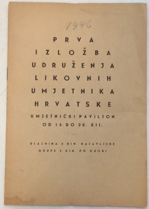 PRVA IZLOŽBA UDRUŽENJA LIKOVNIH UMJETNIKA HRVATSKE OD 15. DO 30.12.194