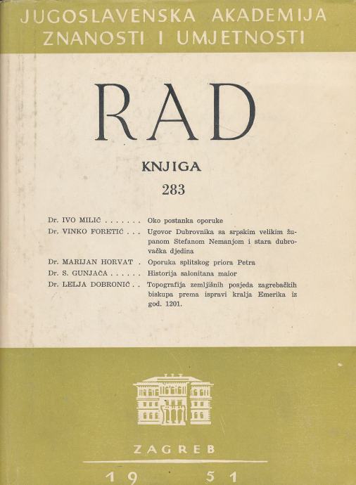 Rad JAZU 283 Dubrovnik Historia salonitana Dobronić