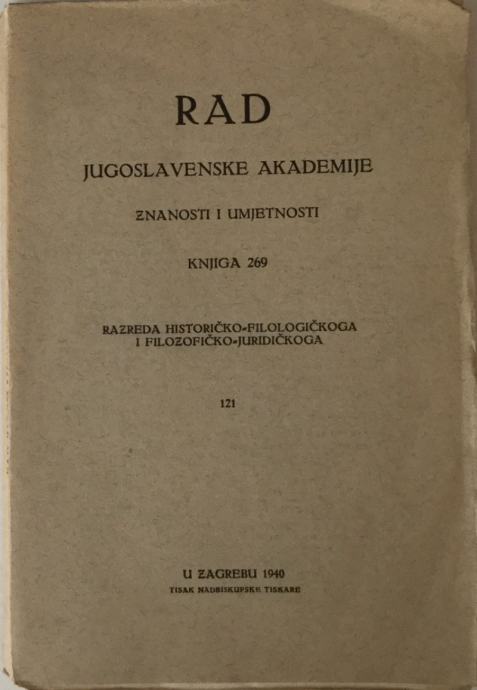 RAD JUGOSLAVENSKE AKADEMIJE ZNANOSTI I UMJETNOSTI - KNJIGA 269